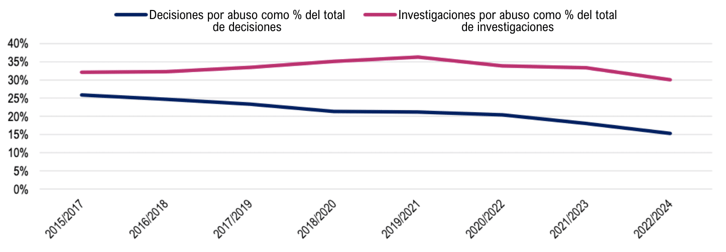 Figura 8. Decisiones e investigaciones de abuso como proporción del total, 2015-2024