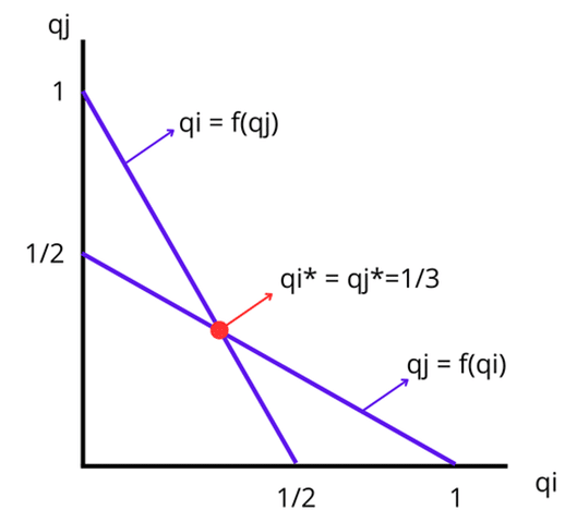 Esta función de reacción será la mejor respuesta de la empresa i, para la cantidad q_{j} que elija la empresa j. Las firmas son simétricas por lo que la función de reacción q_{j}(q_{i}) será: