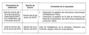4. En ejercicio de las facultades establecidas en el artículo 25.4 de la Ley de Represión de Conductas Anticompetitivas , esta Secretaría Técnica y Amcor sostuvieron reuniones el 16 y 30 de noviembre de 2018 y 7 y 24 de enero de 2019 con la finalidad de establecer los términos de la propuesta final de la empresa. En dichas reuniones la Secretaría Técnica solicitó y la empresa ofreció la presentación de determinada información, la cual esta cumplió con presentar según el siguiente detalle:
