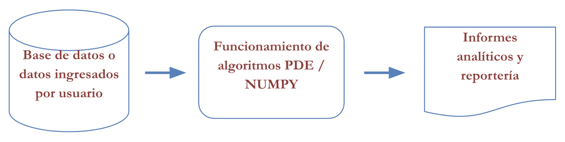 Metodológicamente, EDI incorpora en sus algoritmos a las métricas de cálculo más utilizadas en la literatura de análisis económico del derecho de la competencia, tales como los índices de Herfindahl Hirschman, Stenbacka, Kwoka, entre otros. Una de las ventajas de EDI es que no solo presenta datos o estimaciones matemáticas; estas son una parte de sus componentes. En efecto, gracias a sus algoritmos de IA como PDE[3] y el empleo de librerías como PHPOFFICE y NUMPY, del lenguaje de programación Python. EDI redacta el informe con la explicación e interpretación de cada uno de los indicadores que la plataforma calcula. Desde un punto de vista operativo, EDI funciona siguiendo el siguiente flujograma.