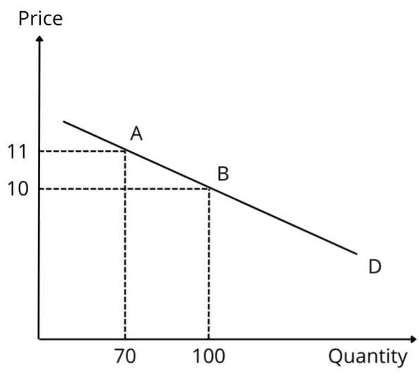 If point A is considered the starting point, the quantity and price experience percentage changes of -30% and 10%, respectively: