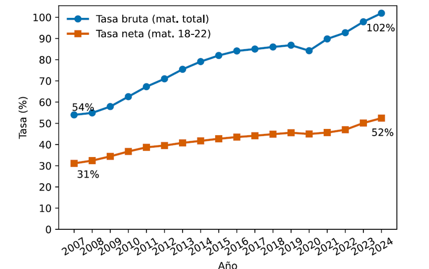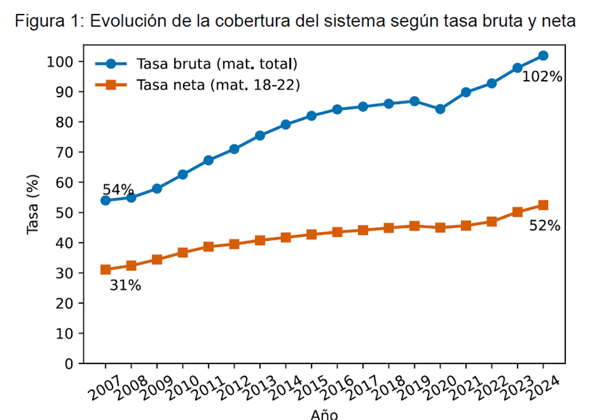Figura 1: Evolución de la cobertura del sistema según tasa bruta y neta