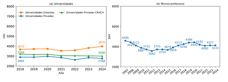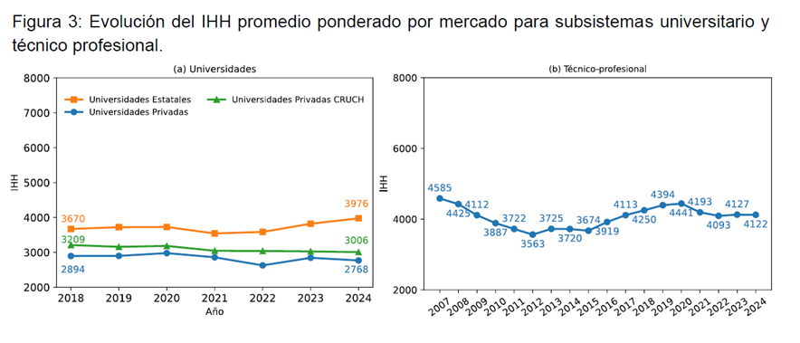 Figura 3: Evaluación del IHH promedio ponderado por mercado para subsistemas universitario y técnico profesional