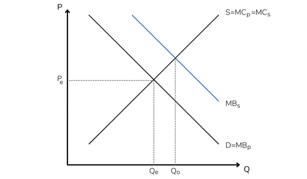 In this case, the marginal social benefit (“MB s” in Graph No. 2), understood as the benefit obtained by society from one additional unit of the good, is higher than the private marginal benefit (“MB p”), corresponding to the benefit obtained by the consumer from this good (aggregate demand of the market in question).