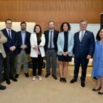 (izq. a der.) Felipe Irarrázabal, José Pardo, Juan José García, Sofía O'Ryan, Manfred Zink, Isabel Aninat, Jorge Grunberg y Mabel Ahumada.