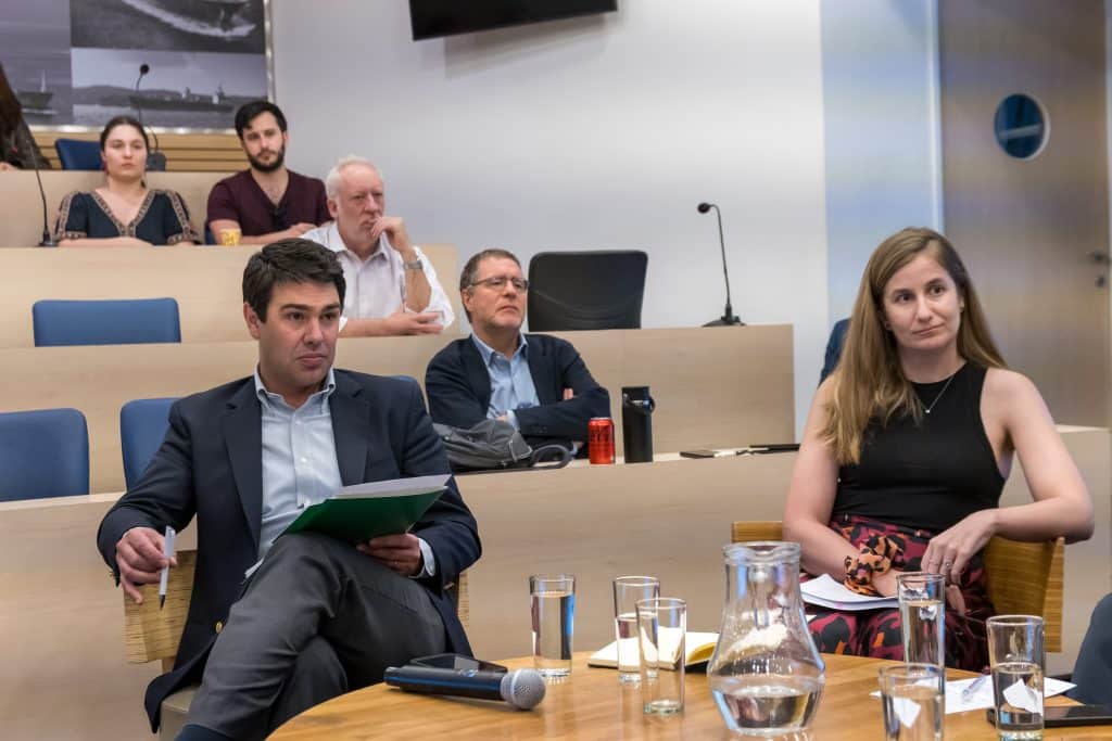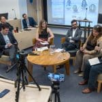 (izq. a der.) Juan Correa, Francisca Ossa, Juan Pablo Iglesias, María Soledad Krause y Javier Wilenmann.