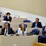 (izq. a der.) Felipe Irarrázaval, Darío Seguel, Raúl Núñez, Vanessa Facuse, Nicolás Palma, Tamara Sandoval, Nicolás Carrasco y Ricardo Riesco.