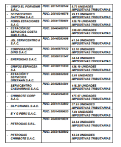 Grifos Espinoza S.A., Eudolio Francisco Ponte Villanueva, E y G Perú S.A.C., GLP Granel S.A.C., César Augusto López Coloma, Compañía General de Combustibles S.A.C., Josué Noriega Ravelo, Chimbote Corp S.A.C., Magran S.A., Estación Pardo S.A., Servicentro Casuarinas S.A.C., Grifo El Porvenir S.R.L., Petrogas S.R.L., Petrogas Chimbote S.A.C., Energigas S.A.C., Estación de Servicios Costa Gas E.I.R.L., Corporación Dino S.A.C., Estación de Servicios Los Ángeles NR S.A.C., JEL Servicentro II S.A.C., Nordi Estaciones S.A.C., Servicentro UNR S.A.C., Urcinio Noriega, Evelyn Lidia Noriega Aponte, Estación y Servicios Grefaan S.A.C., Servicentro Daytona S.A.C. and Transportes y Servicios Múltiples S.A.