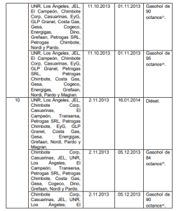Mediante cartas 254, 260, 258, 253, 241, 244, 250, 259, 251, 235, 236, 243 y 2452017/ST-CLC-lNDECOPI, notificadas entre ei 3 y 8 de mayo de 2017 a GLP Granel, Energigas, Costa -Gas, EyG•, El Carmen, Dino, Petrogas Chimbote, Nordi, Transersa, Daytona, Chimbote Corp., UNR y, Pardo, respectivamente; y, Cartas 960, 950, 957, 956 y 951-2017/ST-CLC-lNDECOPl, notificadas entre el 30 y el 31 de octubre de 2017 a Transersa, Daytonal Pardo, UNR y Chimbote Corp., respectivamente, la Secretaría Técnica requirió a cada una de dichas empresas la serie estadística diaria de las compras y ventas de los productos investigados (diésel y gasoholes de 84, 90 y 95 octanos) desde el I de enero de 201 1 hasta el 31 de diciembre de 2016.