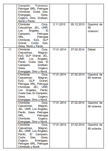 (i) Servicentro Daytona S.A.C. (en adelante, Daytona), Chimbote Corp. S.A.C. (en adelante, Chimbote Corp.), Servicentro Casuarinas S.A.C. (en ade!ante, Casuarinas), Rentik S.A. en Liquidación (en adelante, Rentik), Magran S.A. (en adelante, Magran), Estación de Servicios El Carmen S.A.C. (en adelante, El Carmen), Grifo EI Campeón S.R.L. (en adelante, Et Campeón), Negocios e Inversiones La Unión S.A.C. (en adelante, La Unión), Servicentro UNR S.A.C. (en adelante, UNR), Corporación Dino S.A.C. (en adelante, Dino), Estación Pardo S.A (en adelante, Pardo), Grifo EI Porvenir S.R.L. (en adelante, Porvenir), Grifos Espinoza S.A. (en adelante, Gesa), Compahfa General de Combustibles S.A.C. (en adelante, Cogeco), Petrogas S.R.L, (en adelante, Petrogas S.R.L.), Petrogas Chimbote S.A.C. (en adetante, Petrogas Chimbote), Transportes y Servicios Móltiples S.A. (en adelante, Transersa), JEL