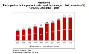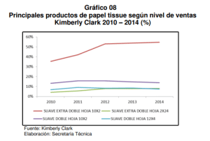 11. Mediante escritos del 24 de julio y 3 de agosto de 2015, Kimberly Clark absolvió parcialmente el requerimiento efectuado mediante Carta 506-2015/ST-CLCINDECOPI, precisando que no poseía un registro con la evolución de sus productos de higiene familiar en comparación con los productos de sus competidores.