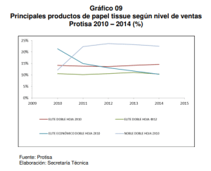 Hacia el año 2010, se describe un evento en el que Kimberly Clark informó a Protisa sobre su decisión de realizar un incremento significativo en los precios del papel higiénico del segmento económico. Protisa, tras recibir esta información, habría decidido acompañar el alza con un margen similar semanas después para evitar que la primera empresa retrocediera en su decisión. Esta dinámica de «seguimiento» de alzas se repitió en el año 2011 para los segmentos económico y medio en el canal moderno.