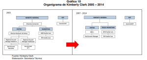86. De conformidad con el Organigrama de dicha empresa14, las decisiones y acciones efectuadas en ejercicio de dichos puestos -entre ellas, desarrollar y liderar la ejecución de una estrategia en un territorio/canal para lograr los estimados de ventas de las marcas (GBA); así como liderar, coordinar y ejecutar en las zonas o cuentas clave a su cargo la estrategia comercial de la compañía para asegurar el cumplimiento de los objetivos de ventas (KAM)- se consideraban realizadas por la mencionada empresa, al ostentar la calidad de representante zonal de Kimberly Clark para el ejercicio de dichas funciones.